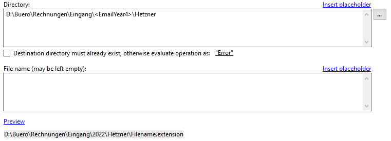 Opens a dialog window for mass adjusting the path of outsourced attachments. This allows you to view or restore the stored